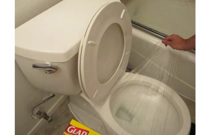 Saran wrap the toilet.