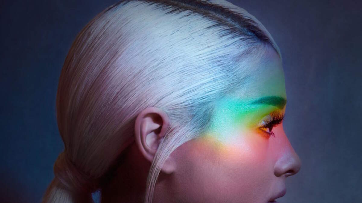 Ariana began teasing "No Tears Left To Cry" on social media by sharing the song's title, which appears upside down. She then slowly rolled out the album art, which showcases her new platinum blonde hair, as the pop star's side profile is prominently displayed with a rainbow glow around her eyes.