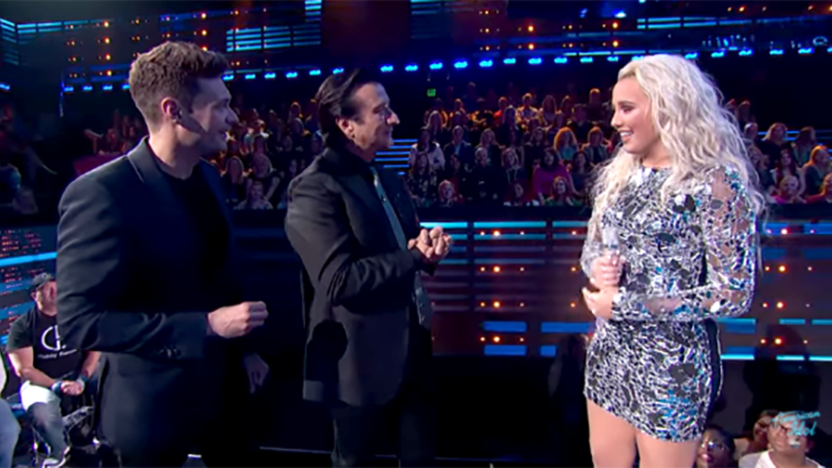 Contestant Gabby Barrett wowed the crowd on Sunday night with a true-to-the-original version of Journey's "Don't Stop Believin'." Barrett received a well-deserved standing ovation, but as she thanked her band and prepared for comments from judges Lionel Richie, Katy Perry and Luke Bryan, the applause began to surge as the judges pointed to the left of the dais: Steve Perry was in the front row!