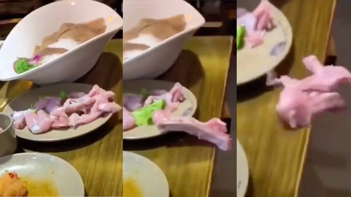 Facebook user Rie Prettyredbone Phillips posted a video of a raw chicken breast appearing to come back to life and crawl off a plate. While there wasn't any information with the clip, according to The Sun, the video was likely recorded at a restaurant where customers cook their own meat. It shows quite simply a piece of raw chicken twitch and then wriggle off the plate it is on and fall to the floor as a shocked woman screams.