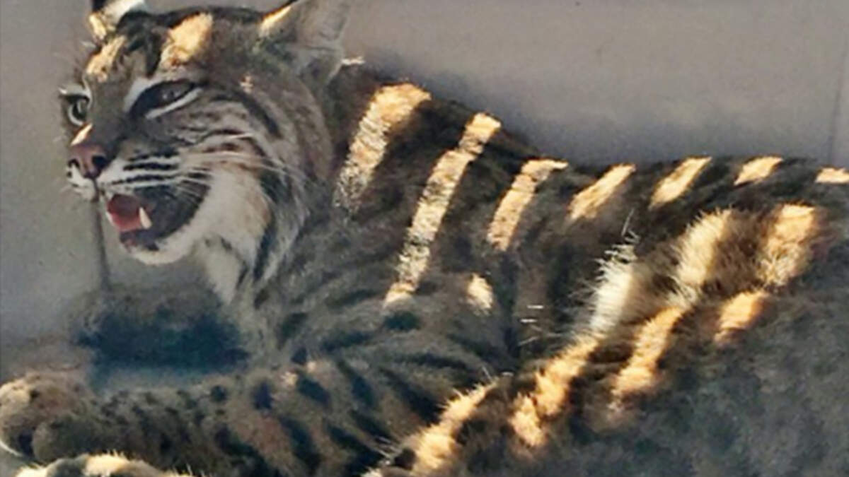 District Wildlife Manager Sarah Watson responded to the call and was shocked when she saw the 20-pound bobcat sitting in the SUV. She slammed the door shut and got a trapping device to try to remove the injured animal.