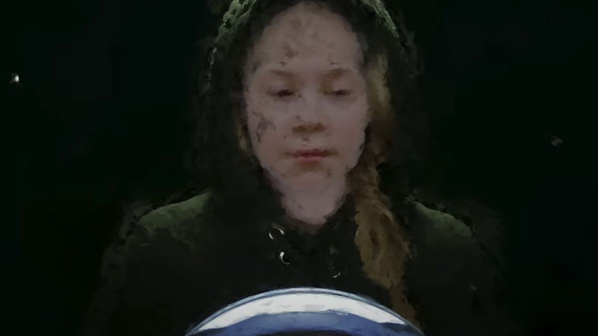 There, he gets a glimpse into a crystal ball, and what he sees is terrifying. Ice caps melt; entire cities drown in water; polar bears walk across dry, hot tundra. It's the Earth's future. And it's pretty bleak. As the camera pans to the psychic, we see Greta Thunberg — the young climate activist who's expressed her concern for the world's future if humans don't start making drastic changes, and fast. Pearl Jam members also make an appearance on Tarot cards.