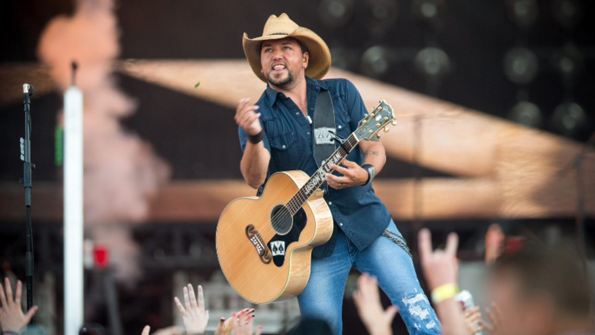 Jason Aldean is officially back in the studio! On Tuesday (October 13), the country star turned to Instagram to give his fans an update on new music, sharing a photo of himself wearing headphones and smiling in front of a microphone ready to record.