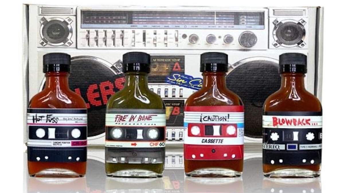 Cased in boombox-designed packaging, each of the four sauces is labeled with a cassette tape and named after a song off The Killers' latest album, Imploding the Mirage.