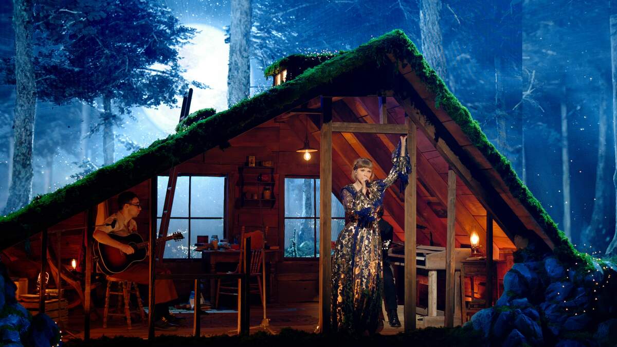 Swift kicked off her medley with 'Cardigan'—aka the first single from folklore. She then grabbed her guitar and joined Desnner and Antonoff in a cozy cabin set to sing 'August,' another track off folklore. Fans of Swift will recognize these songs as two of the three tracks that make up folklore's high school love triangle saga. The third song, of course, is 'Betty,' which Swift performed at the 2020 ACM Awards.