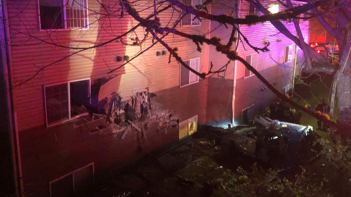 The incident went down just after 1 a.m. Sunday (April 4) in Kent. Puget Sound Fire Rescue said the went off the roadway and crashed into a second-floor apartment along the 8700 block of South 259th Street. People living inside the apartment were there at the time, but no no one was hurt, according to reporters.