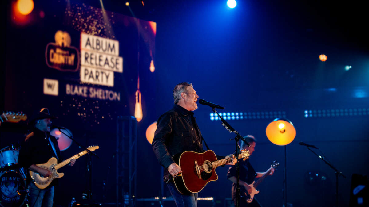 During his iHeartCountry Album Release Party, Shelton performed songs from Body Language live, including "Minimum Wage," "Happy Anywhere" and "Bible Verses," in addition to fan favorites from previous albums like "Austin," "God's Country," "Gonna," "Came Here To Forget," "The More I Drink," "God Gave Me You" and "Boys 'Round Here."