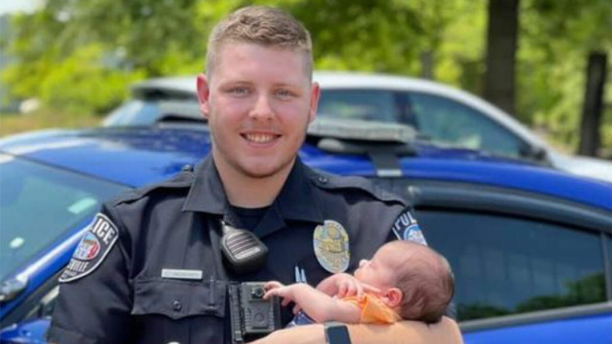 When Officer Cody Hubbard, 23, arrived at their home, the young boy had turned purple and was struggling to breathe.