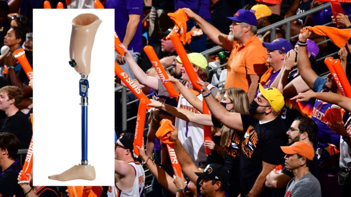 "The Suns have a 'show off your show' cam and someone just took off their prosthetic leg with a nike and started waving it in the air??'