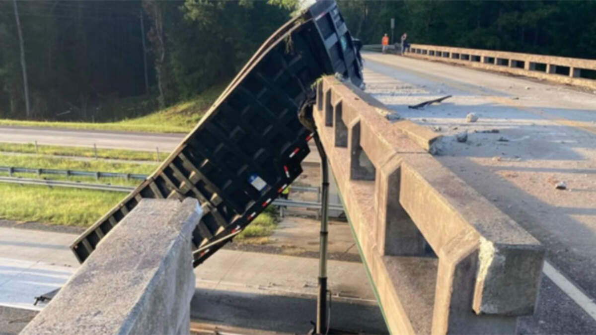 A bridge over Interstate 16 in Georgia moved six feet after a dump truck crashed into it. The dump truck was carrying trailer tires and had the bed in the raised position as it cruised down the highway around 1:30 a.m. on Friday (July 16) morning.