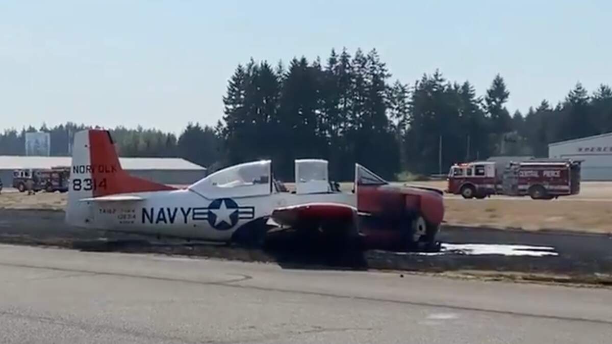 Crews with Central Pierce Fire & Rescue were on the scene in Puyallup, Washington after the crash sparked a small brush fire near the runway at Thun Field. Reporters said firefighters were able to douse the flames within an hour.