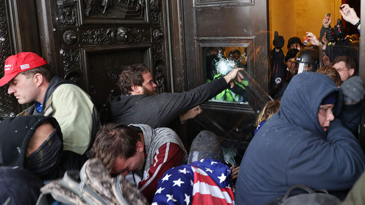 Babbitt, a 35-year-old from San Diego, was shot as a mob of people tried to force their way through two doors inside the Capitol Building. She was attempting to crawl through a broken glass pane on one of the doors when the officer fired a single shot, striking her in the shoulder.