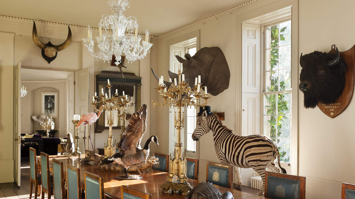 It's unlikely that the home actually comes with the trophies, but if you're willing to take a tour of a spooky safari, the house can be yours for $2.3 million.