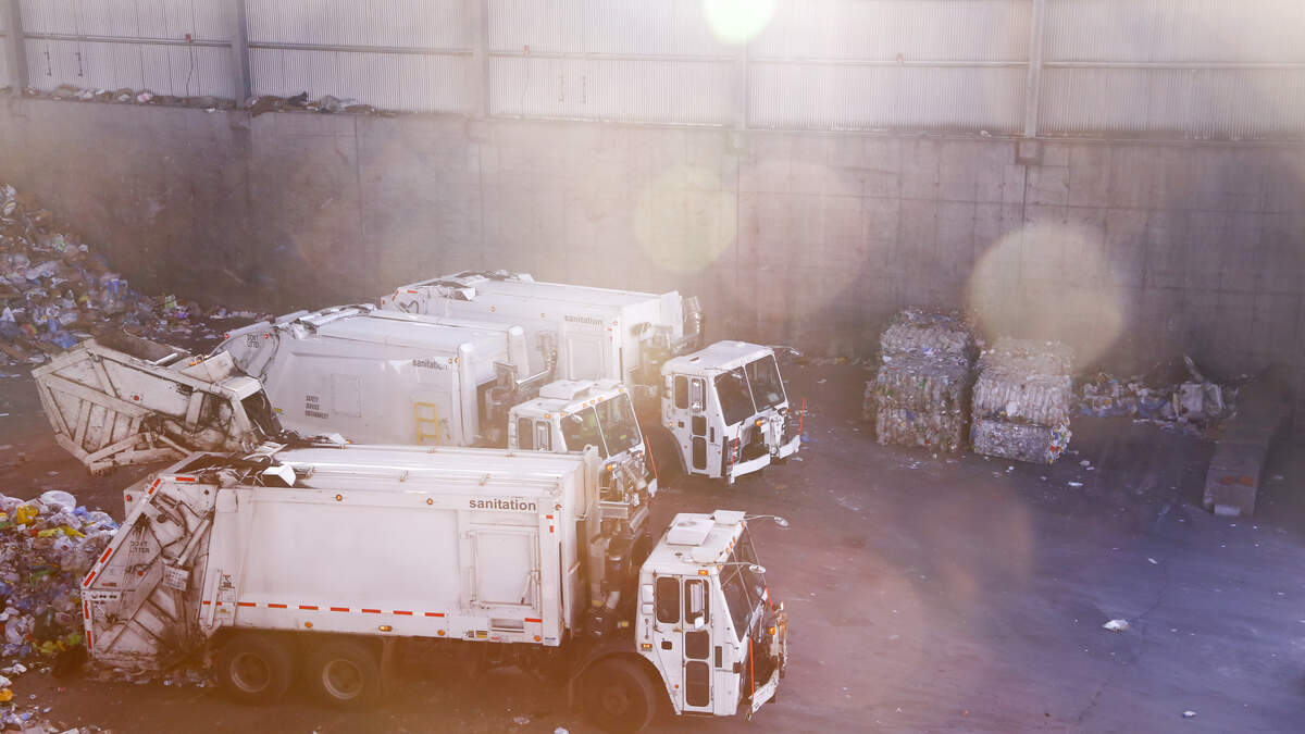 The garbage truck driver was heading southbound when he attempted to avoid the vehicle that ran the red light by swerving, but the car was still struck.