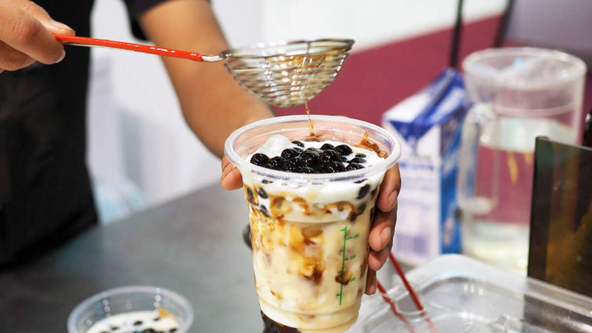 The cafe also features drinks like brown sugar boba milk and even salted cheese top coffee thanks to a partnership with Happy Lemon.