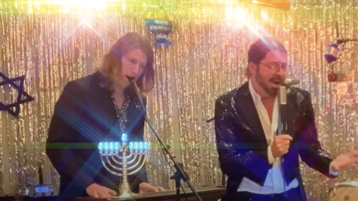 Another day of Hanukkah, another glorious entry to Dave Grohl and Greg Kurstin's Hanukkah Sessions. For the third night, the duo took on Barry Manilow's 1985 hit "Copacabana," and Grohl pulled double duty: playing drums and also giving his best Manilow impression, suit and all.