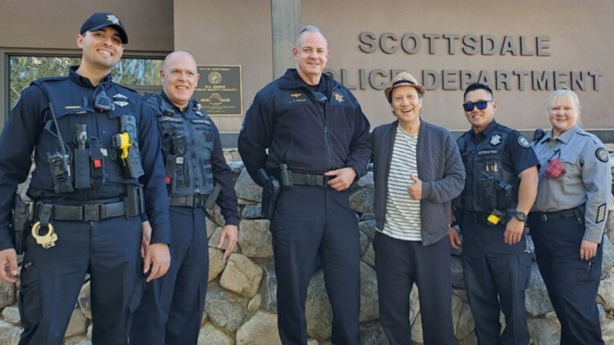 The Scottsdale Police Department posted a photo on Facebook with Schneider, saying "A motorist assist provided plenty of laughs and a fun photo op in District 4 today! Thanks for the love, @iamrobschneider."