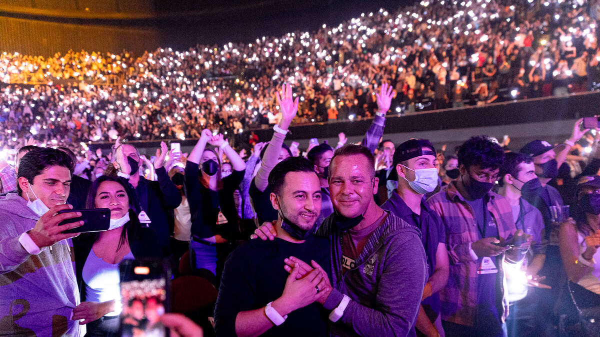 The heartfelt moment at The Forum in Los Angeles, California was caught on camera. The video shows the happy couple celebrating their new engagement as nearby audience members applauded, and soon after, social media users gushed with congratulatory messages. Watch the sentimental moment, shared on Twitter by iHeartRadio's Los Angeles-based ALT 98.7, here: