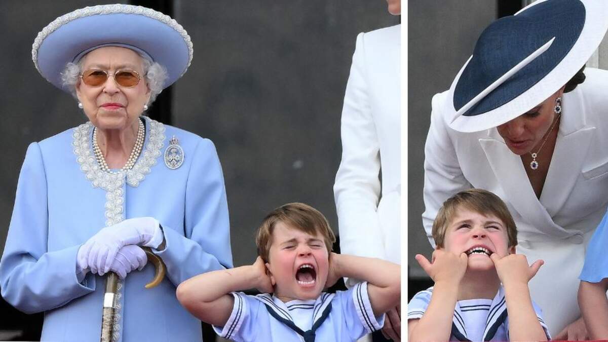 As they made their official balcony appearance, Louis stole the show with a series of hilarious faces which made his mom Kate lean down and whisper something into his ear. According to Page Six, the hilarious faces were a reaction to the loud airplanes flying overhead. The young Prince was photographed with his eyes shut, hands over his ears, and mouth wide open while his great-grandmother calmly stood next to him for the celebration.