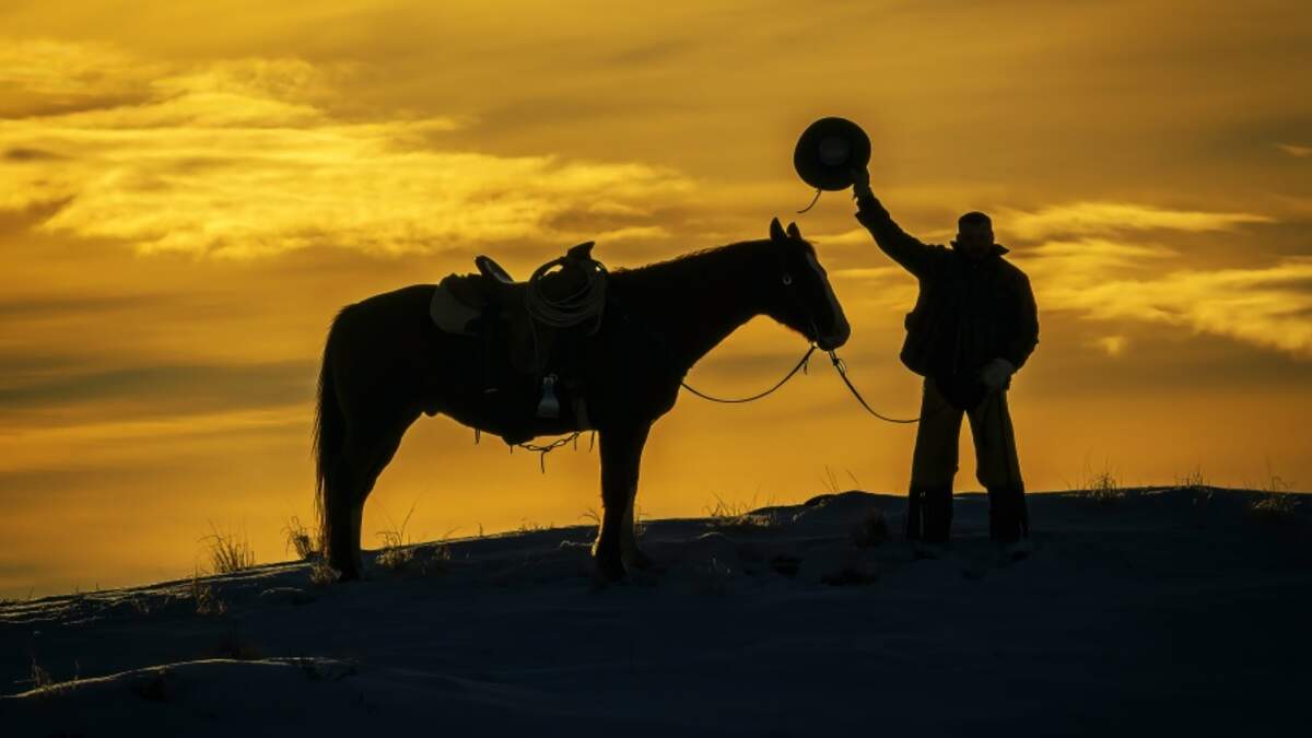 After getting Dakota ready, he dresses himself in boots, chaps, a cowboy hat, and a western holster. He said, "I like looking as authentic as I can, from the 1800s somewhere in there. Back then, your word meant something."