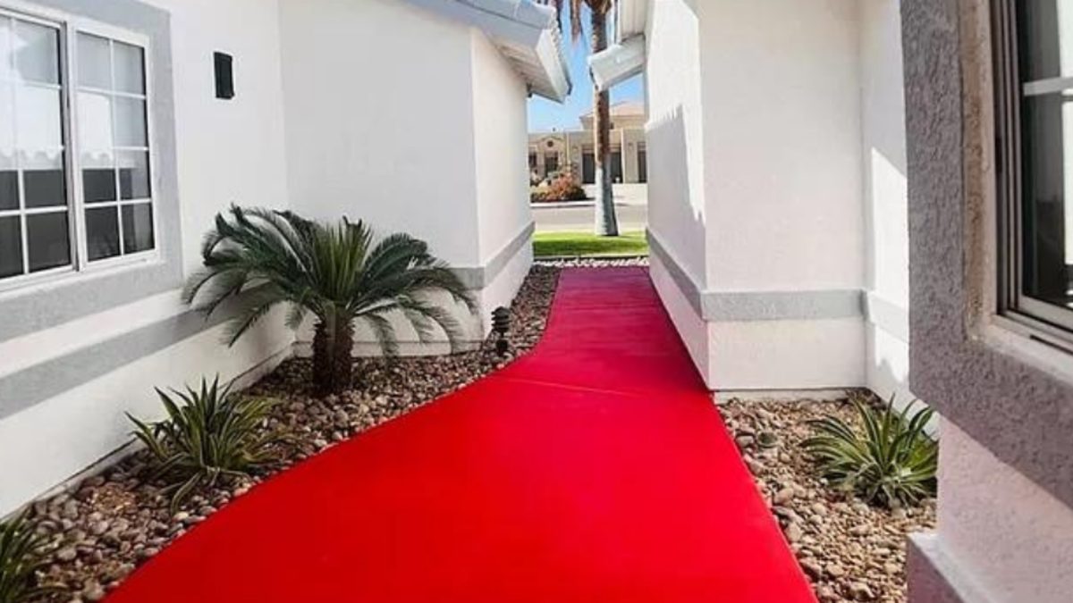 A unique California property that features its very own red carpet has recently hit the market. According to Zillow, the "Diva House" is located at 79124 Lake Club Drive in Indio California. It features four-bedrooms and three-bathrooms as well as private pool, spa, and seven car garage. One of the most interesting aspects about the space is what covers the walls. Each room features a variety of hand painted figures that pay tribute to fabulous female music industry icons.