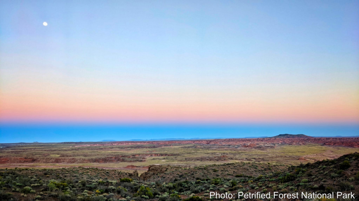 The Petrified Forest National Park posted photos of the "ocean view" on Facebook. Turns out, the blue ocean view is actually an illusion caused by the Earth's shadow and the Belt of Venus.