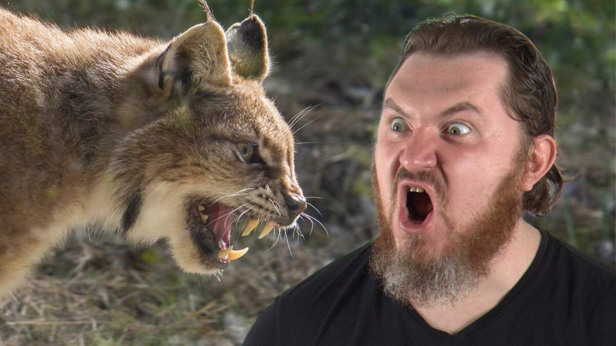 After the bold man got the bobcat on the ground, it darted into the nearby woods. Koda didn't even get a scratch on him.