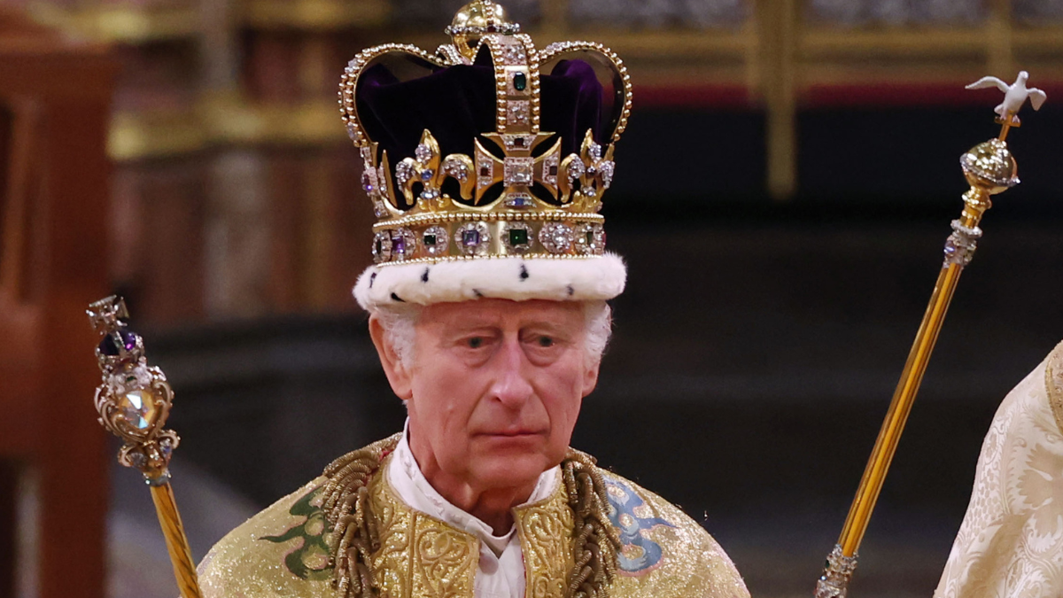 The photo, taken by Hugo Burnand in the Throne Room shortly after the coronation ceremony, shows Charles donned in the Robe of Estate and Imperial State Crown while holding the Sovereign's Orb and Soveriegn's Scepter with Cross, Page Six reports. To his right is Prince William, 40, wearing a ceremonial dress uniform and to his left is Prince George, 9, dressed in his page uniform.