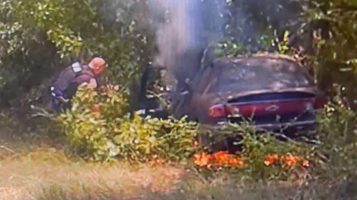 The driver refused to pull over and led Hill on a chase for nearly ten minutes. The high-speed chase came to an end when the driver crashed into the woods. As the driver fled on foot, the car burst into flames.