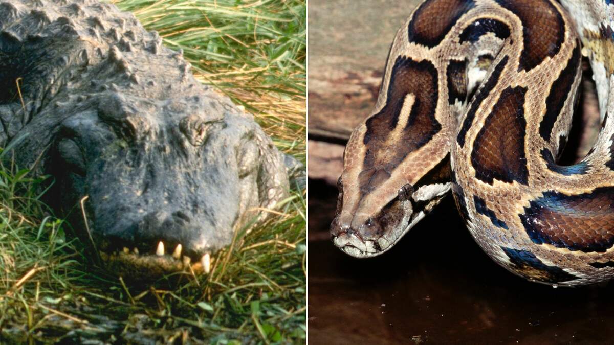 Burmese pythons, one of the largest snake species in the world, aren't native to Florida and have wreaked havoc on the state's ecosystems. There have even been instances where these massive reptiles have preyed upon alligators, according to the Florida Fish and Wildlife Conservation Commission (FWC).