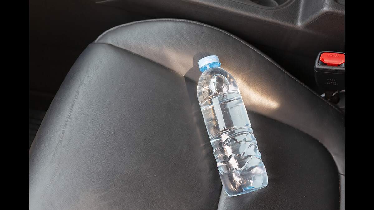 It is crucial that you pay close attention to where you leave your water, especially if it is in a clear plastic bottle. As for why, well if you've ever watched a survival reality show, you might know that water in a clear plastic bottle can work in the same way that a magnifying glass does, by focusing the sun's light and heat onto one spot. That means that if the sun hits a bottle in your automobile in just the right way, it could actually start a devastating fire in your car.