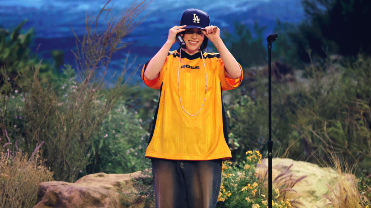 The "Ocean Eyes" artist donned a baggy yellow jersey to pair with jeans and sneakers aside FINNEAS in a loose-fitted, button-up shirt, suit jacket, and slacks. The "LUNCH" icon also wore an LA hat and performed in front of a rotating background of beautiful California mountain scenes, paying tribute to the City of Angels following the fires that ravaged the region earlier this year.