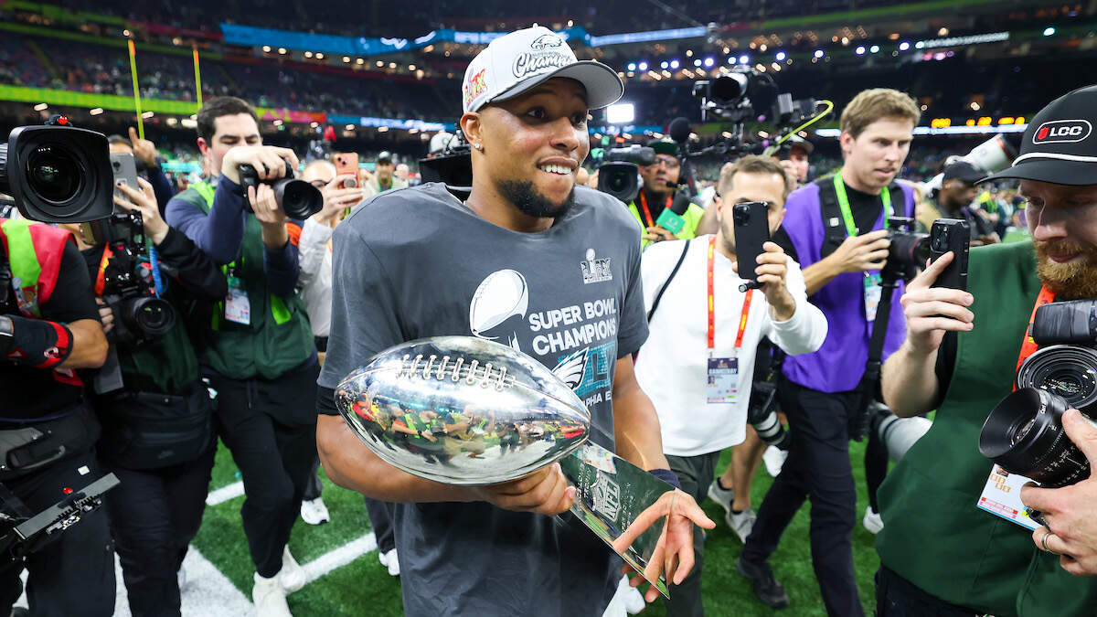 Barkley finished Sunday's game with 57 yards on 25 rushing attempts, which took pressure off of quarterback Jalen Hurts, who was named Super Bowl MVP after throwing for 221 yards, two touchdowns and one interception on 17 of 22 passing while also recording 72 yards and one touchdown on 11 rushing attempts.