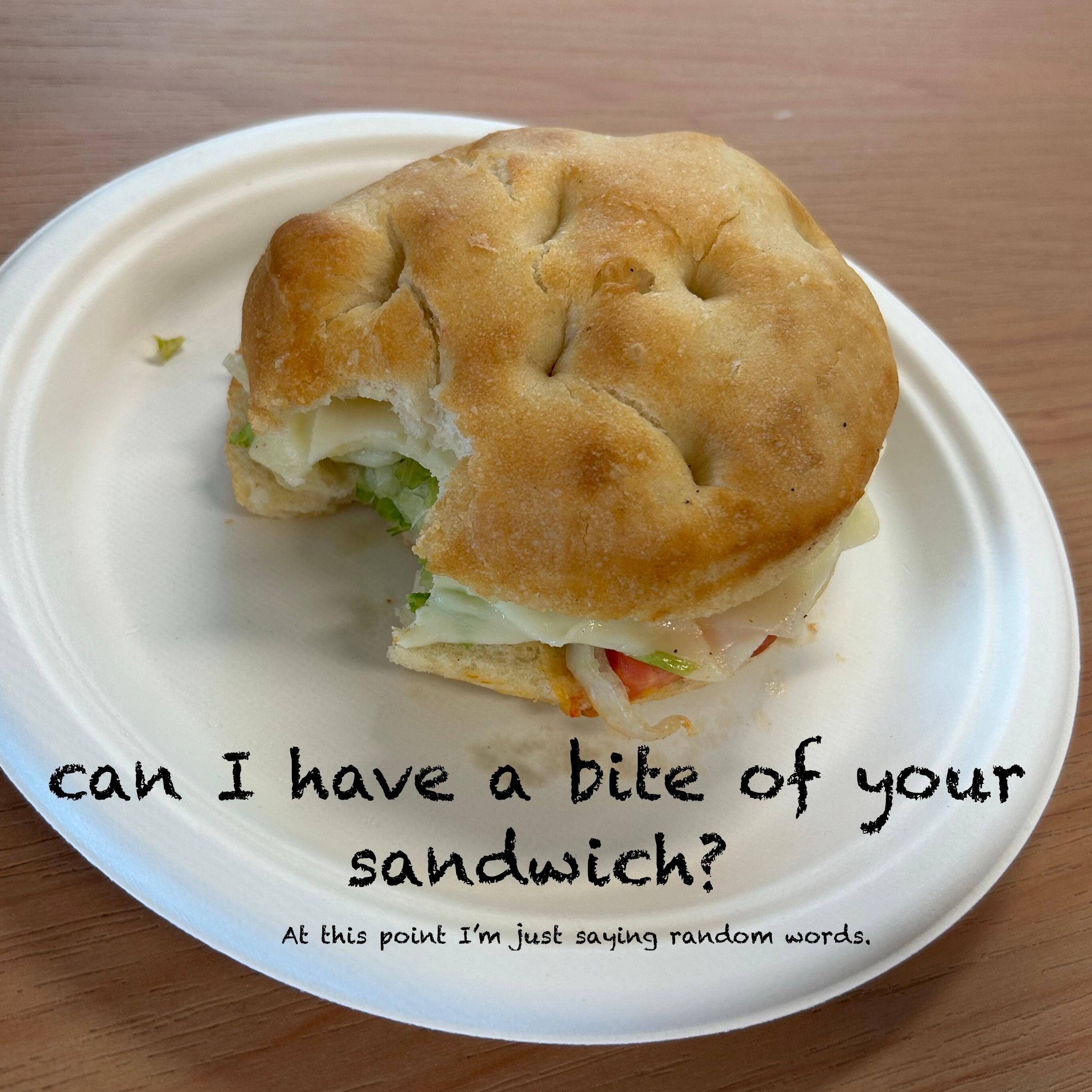 can I have a bite of your sandwich? At this point I'm just saying random words.