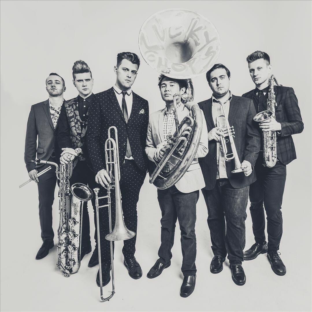 Busking superstars, the New York instrumental outfit Lucky Chops are a dynamic, horn-based ensemble known for their infectious live performances and funky, electronic dance music-influenced cover songs. The group broke out in 2014 after a video of their subway performance mash-up of Lipps, Inc.'s "Funkytown" and James Brown's "I Feel Good" went viral. Following several EPs, they released their 2019 full-length debut, Lucky Chops.