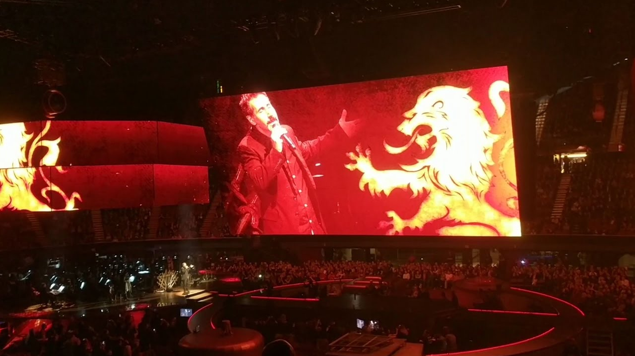 System of a Down's Serj Tankian surprised the audience at The Game Of Thrones Concert Experience at the Forum in Inglewood, California by contributing his haunting vocals to the song "Rains of Castamere" in the epic clip above.