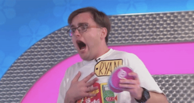 Ryan Belz got to the top of the Plinko board with all five chips the first one he dropped landed in the $10,000 slot. He shrieked with delight and wasn't discouraged when chip two went for just $1000. His third try hit for $10,000 again and his screams got louder. After a $500 chip, his final one again went into $10,000, giving him a total of $31,500 in winnings in the game - the highest ever. His reaction was priceless.