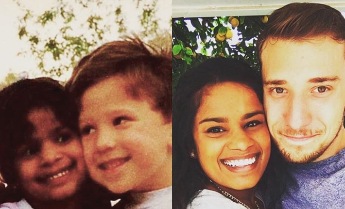 They lost touch after preschool and wound up at different high schools, but fate brought them together again and distance couldn't keep them apart. They started dating through high school and, even though they were even farther apart, in college as well.