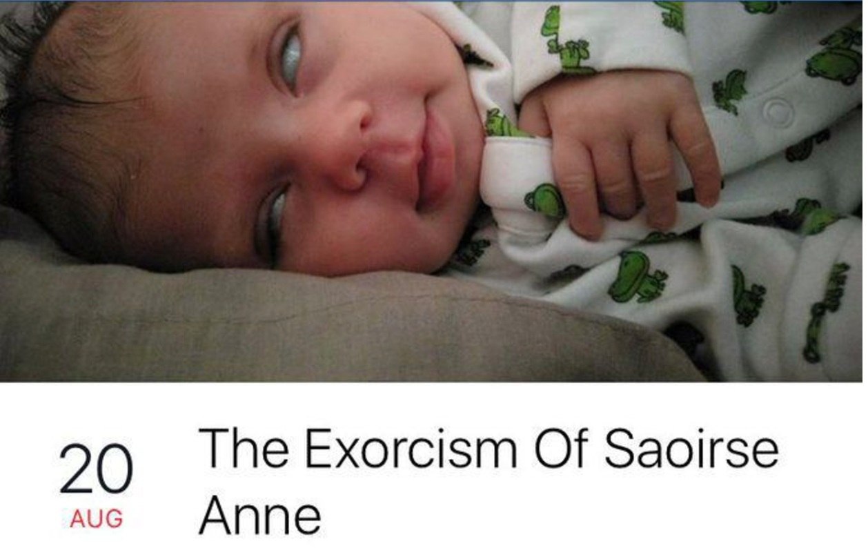 That version of the invite didn't last too long and clearly someone gave the dad an earful because soon after, the invitation was edited to reflect how it is a Christening, and it now features a better photo of the little girl. The event description also now reads Saoirse will "get christened in a very serious and real ceremony."