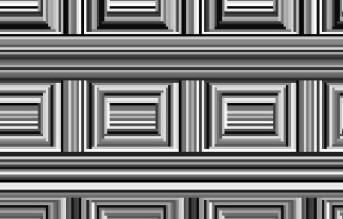 It happens because of something called the Coffer Illusion, where our brain groups black, white and gray lines as either rectangles or circles.Â