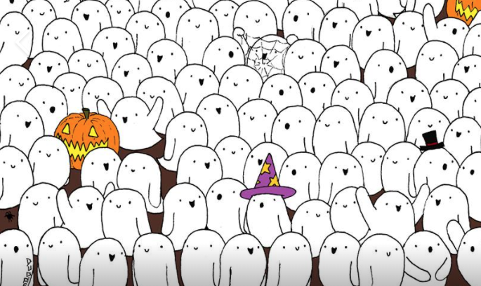 On Halloween night, you see plenty of costumes, some of them are scary - like ghosts, and some of them are adorable, like cuddly polar bears. Since both of those costumes are white, normally, it'd be a pretty simple task to tell them apart, but illustrator Gergley Dudas created a puzzle that makes it quite a bit more difficult.