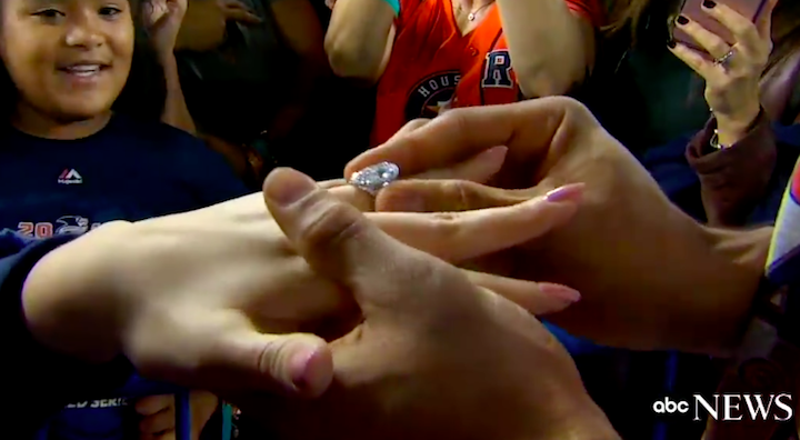Correa then walked over to Daniella, got down on one knee, and took out a the (mega) ring.
