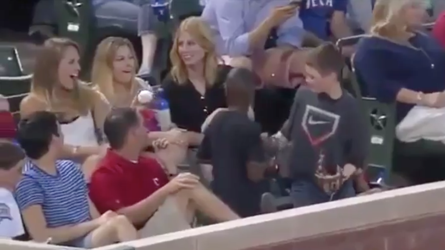 There's always the rare chance that you might catch a foul or home run ball at a baseball game and get to take home a pretty cool souvenir. Well after that happened to one boy, he actually gave the ball to a pretty woman in the row behind him... or so she thought.