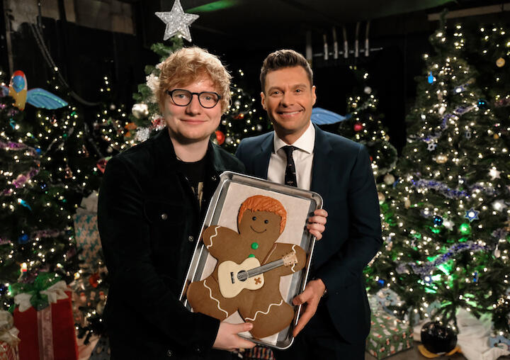 Ryan Seacrest Presents Ed Sheeran With a Ginger Gingerbread Man and OMG