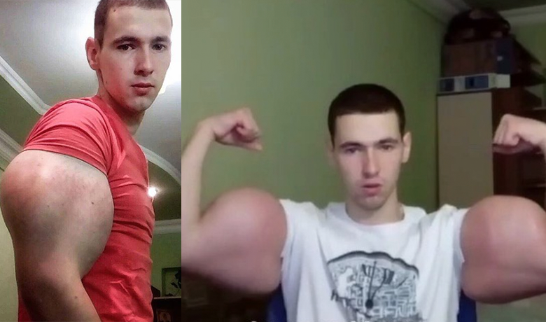 A 21-year-old Russian ex-soldier wanted to bulk up his biceps so he decided to inject himself with a homemade potion, but now he says that his "bazooka arms are about to fall off."