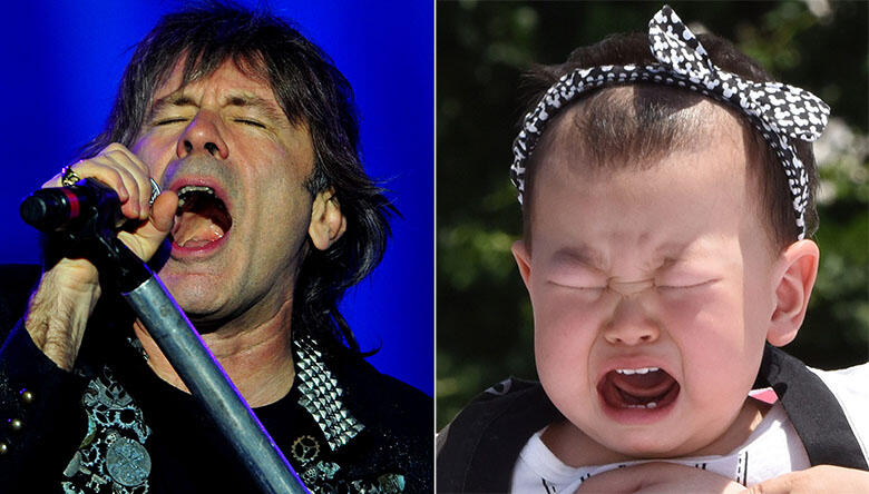 Iron Maiden frontman Bruce Dickinson says the reason he's still able to pull of the vocal acrobatics that made him famous in the '80s is because he sings like a baby.