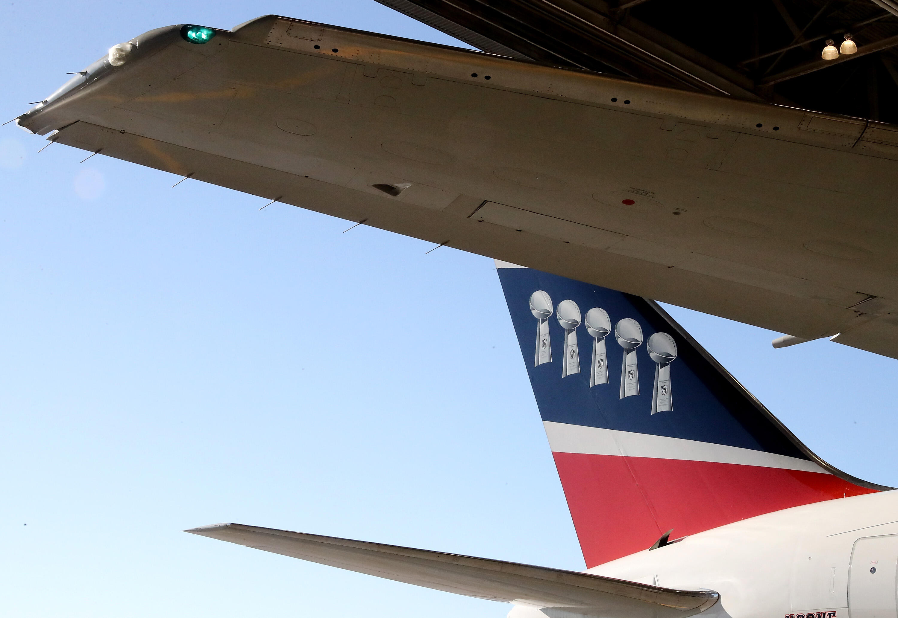 The Patriots debuted their "AirKraft" in 2017 that featured the team's logo and five Superbowl trophies on its tail. The team owns two of the Boeing wide-body 767s.