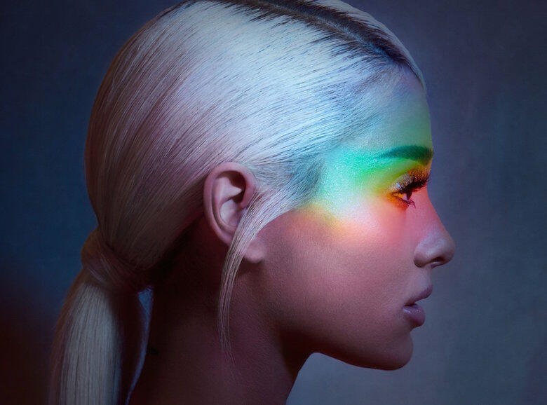 Ariana began teasing "No Tears Left To Cry" on social media by sharing the song's title, which appears upside down. She then slowly rolled out the album art, which showcases her new platinum blonde hair, as the pop star's side profile is prominently displayed with a rainbow glow around her eyes.