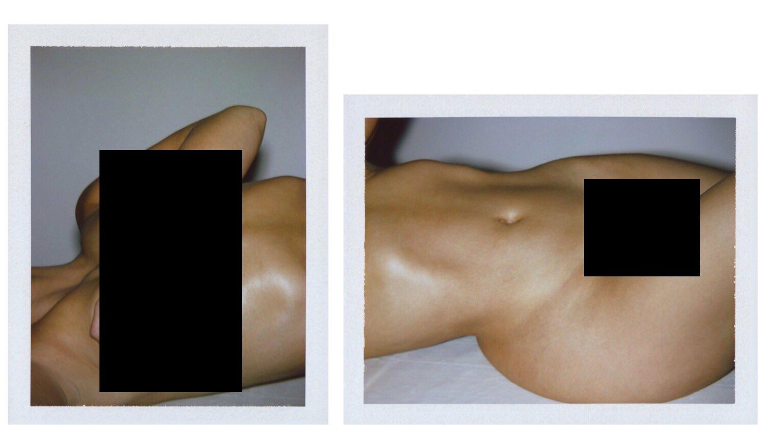 She posted two photos on Twitter, one of her upper body, with a strategically-placed arm, and one of her lower body, which shows almost everything.