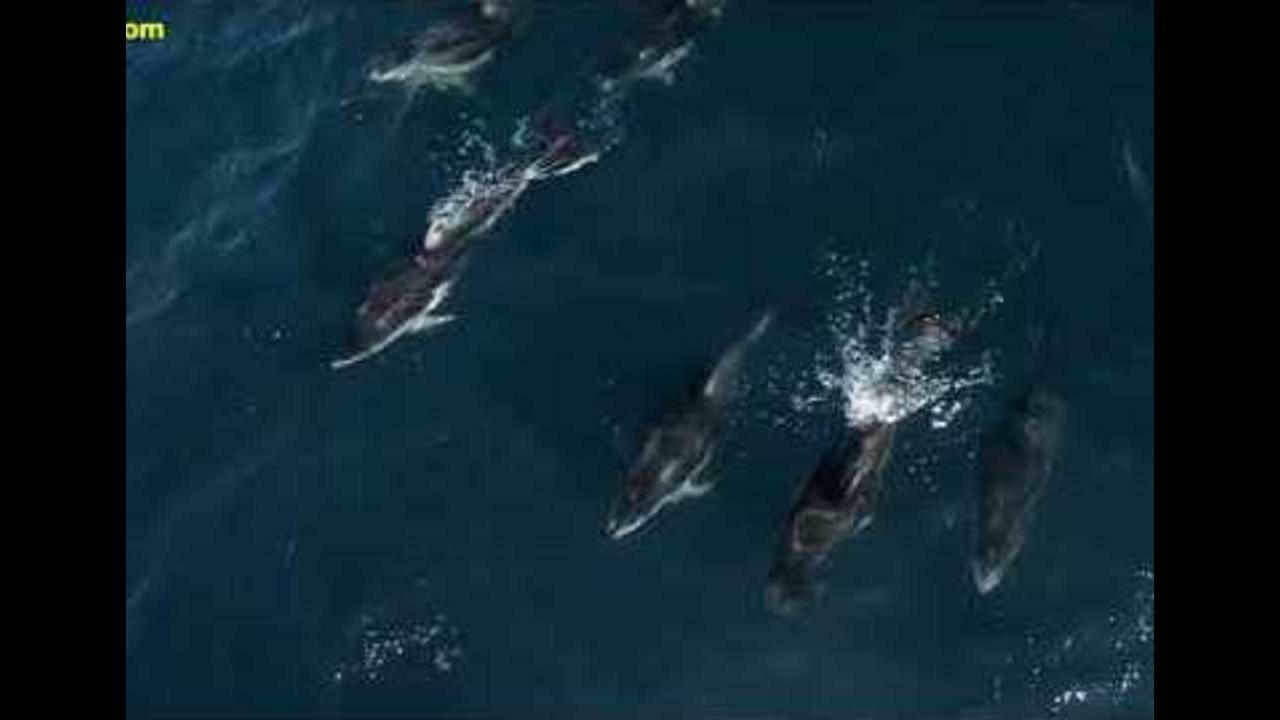 The playful mammals were seen "snout riding" the mother humpback and her calf by drone video that captured the footage. "Snout riding" is when dolphins intentionally annoy whales by swimming and splashing over their heads, which causes the whale to lunge forward in the water. The waves created by the sudden movement are used by the dolphins to swim and surf in.